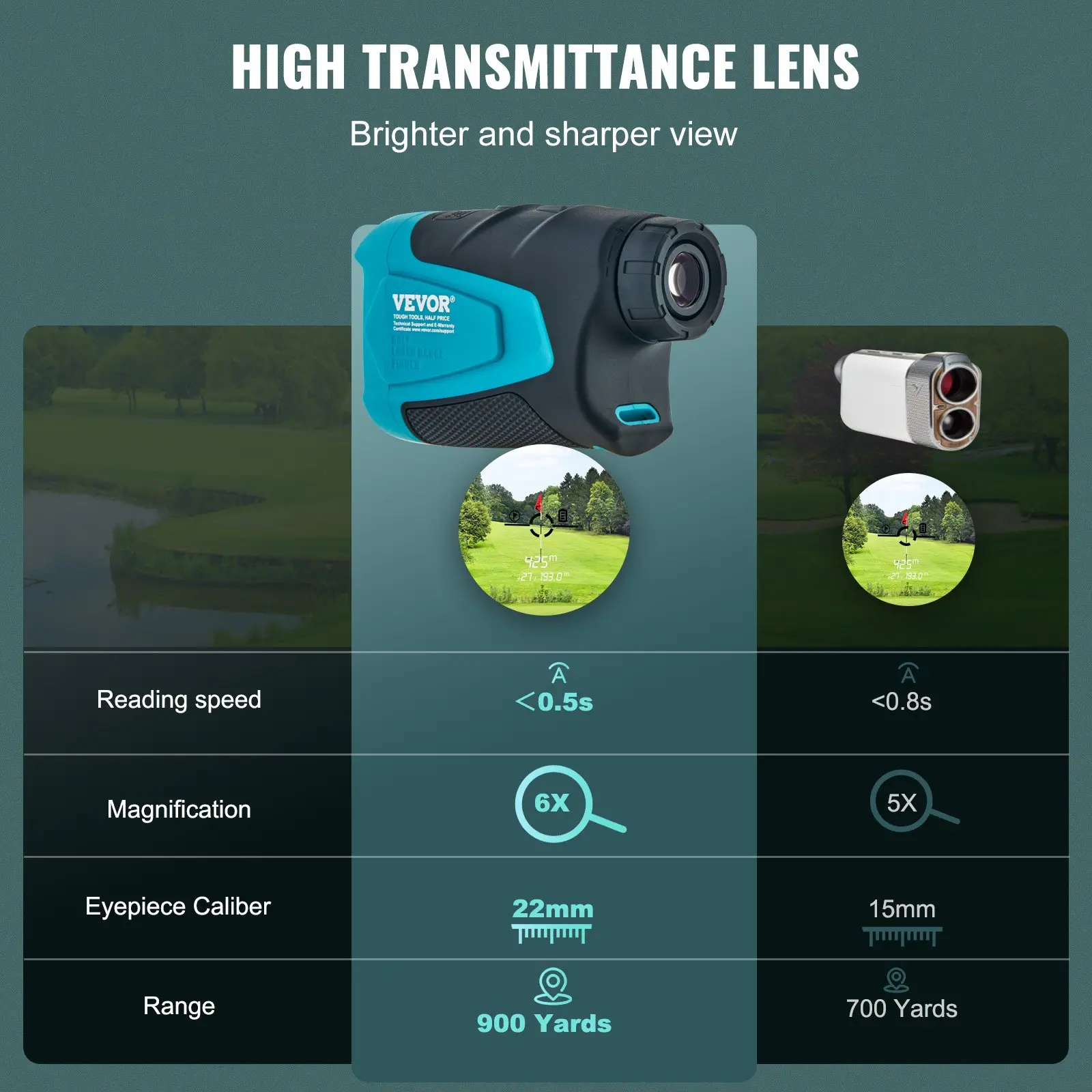 VEVOR Golf Rangefinder, 900 Yards Laser Golfing Hunting Range Finder, 6X Magnification Distance Measuring, Golfing Accessory with External Magnet Mount, High-Precision Flag Lock, Slope, and Batteries